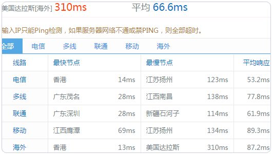 2、从 Ping 值来看,GCP 云服务器的响应速度非常好,基本上都保存在 100 以下。