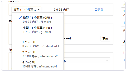 3、创建 VM 的过程中,在机器类型中可以选择内存与 CPU 配置,最小是 0.6GB 内存,启动磁盘就是设置操作系统,美国机房的 VPS 价格是最便宜的,从页面右边我们也可以看到永久免费配额。(点击放大)