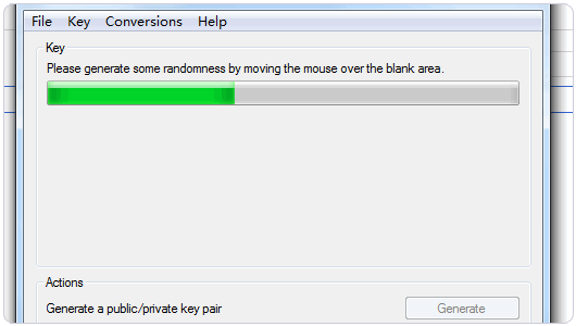 3、启动你的软件 PuttyGen,用软件生成一个 Key。