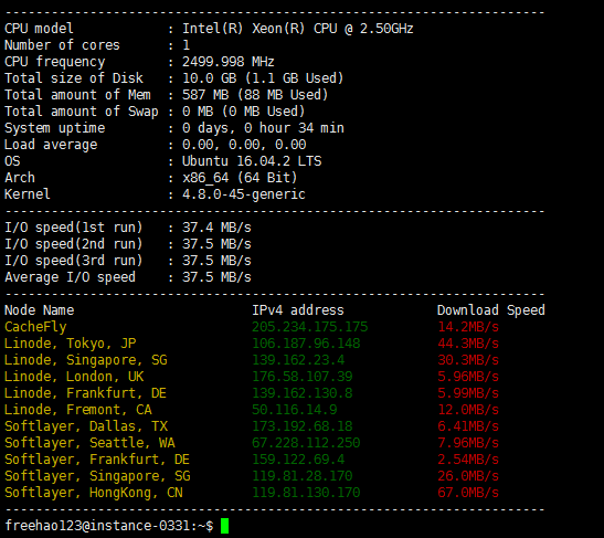 5、这是 VPS 主机的带宽测试还有 IO 读写速度测试,IO 速度比较低。(点击放大)