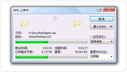 3、直接使用 Winscp 拖动文件从本地上传到 GCP 的服务器,上传速度不是很快。