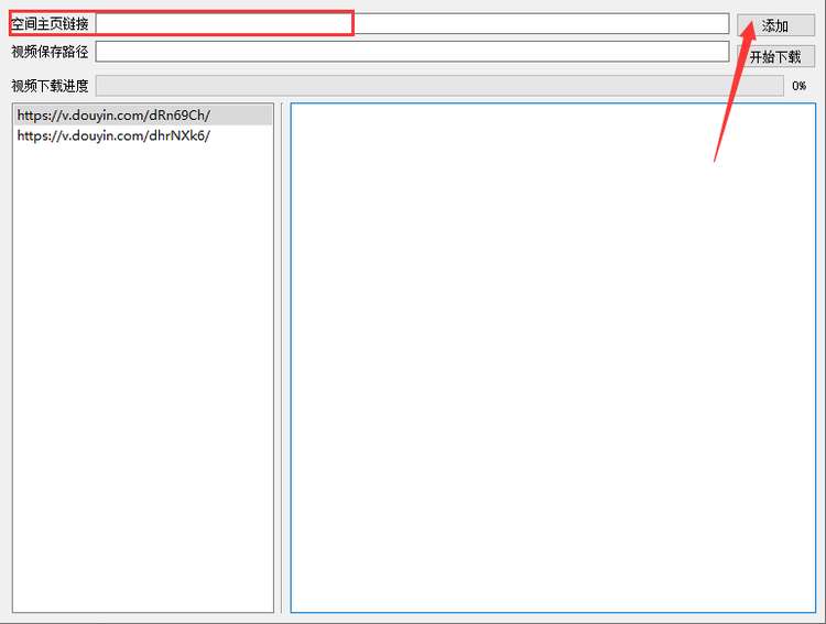4、打开这款短视频下载工具,把我们获取到的主页地址复制到“空间主页链接”后面的输入框里面,点击“添加”按钮,这个时候,链接会添加到软件列表里面。
